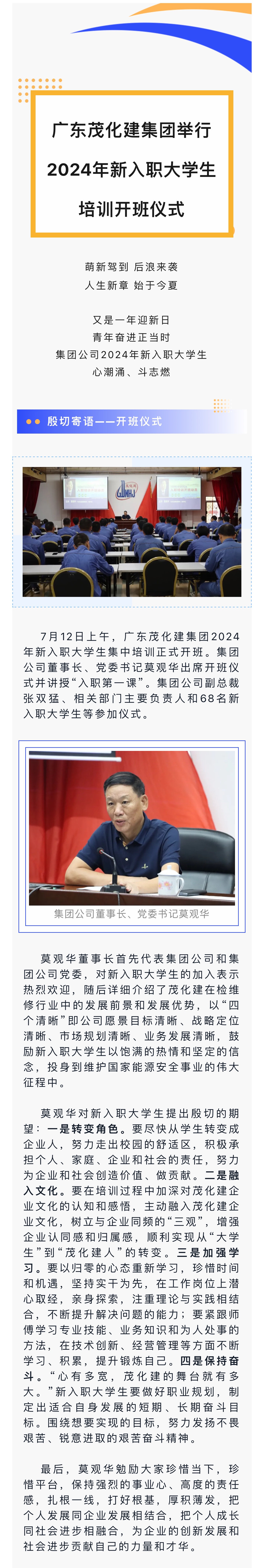 廣東茂化建集團舉行2024年新入職大學生培訓開班儀式