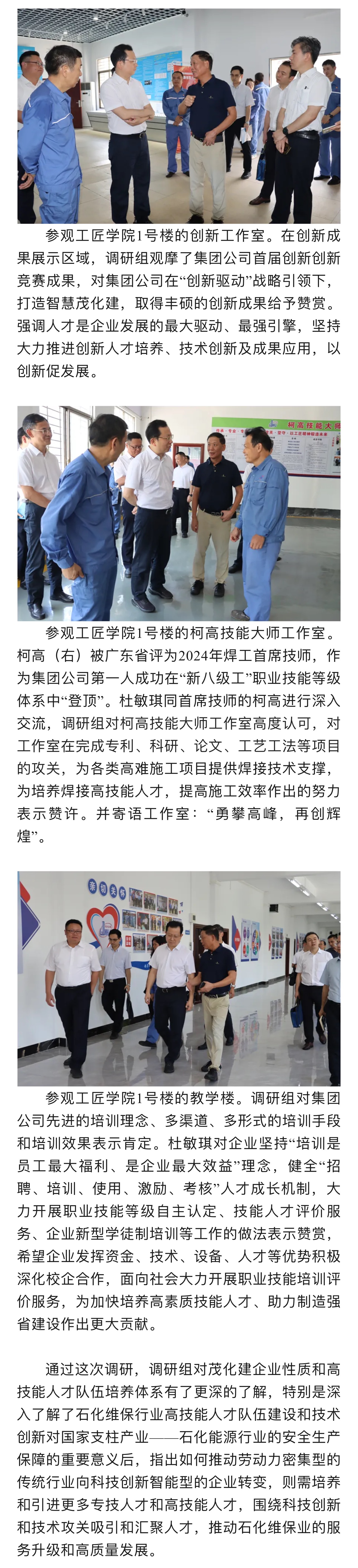 廣東省人社廳到集團(tuán)公司調(diào)研高技能人才隊(duì)伍建設(shè)工作