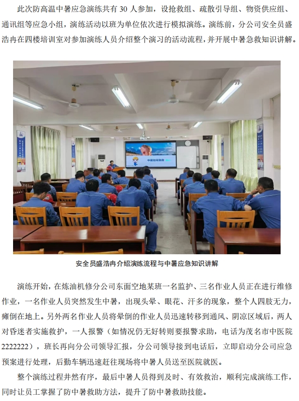 煉油機(jī)修開展防高溫中暑應(yīng)急演練
