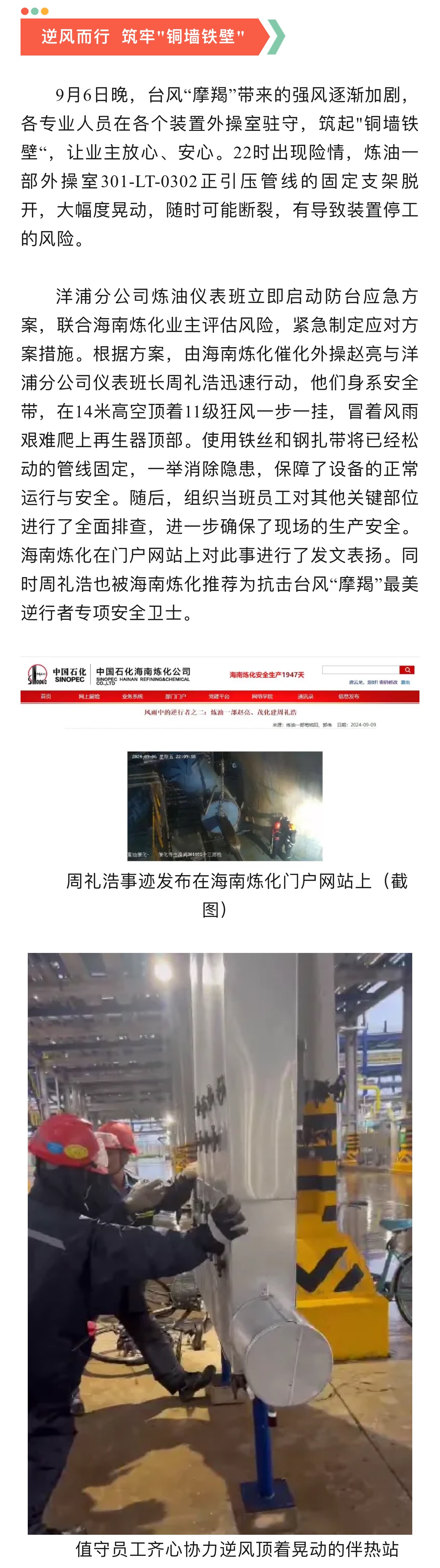 茂化建洋浦分公司抗擊超強臺風"摩羯”獲業(yè)主高度表揚
