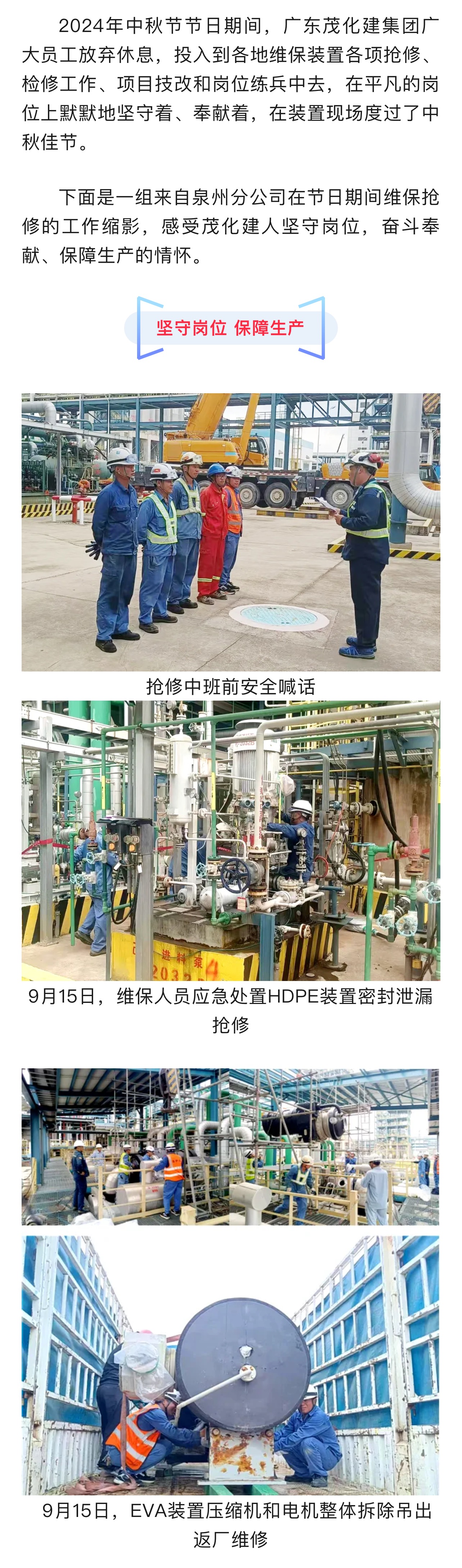 組圖|裝置護航 泉州分公司中秋節(jié)日維保搶修忙