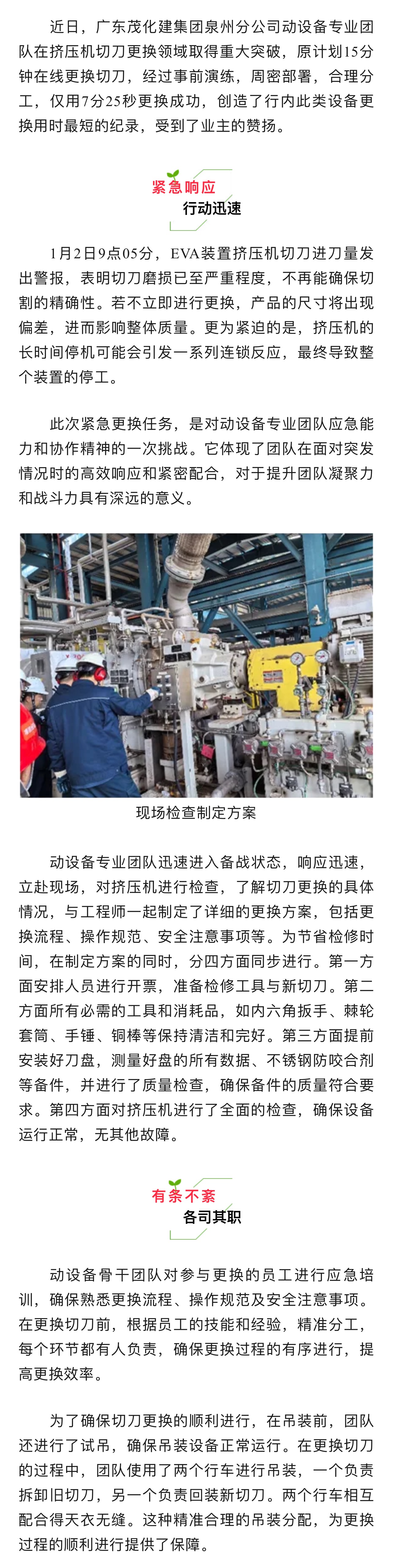 超棒!泉州動(dòng)設(shè)備團(tuán)隊(duì) | 7分25秒成功在線更換擠壓機(jī)切刀