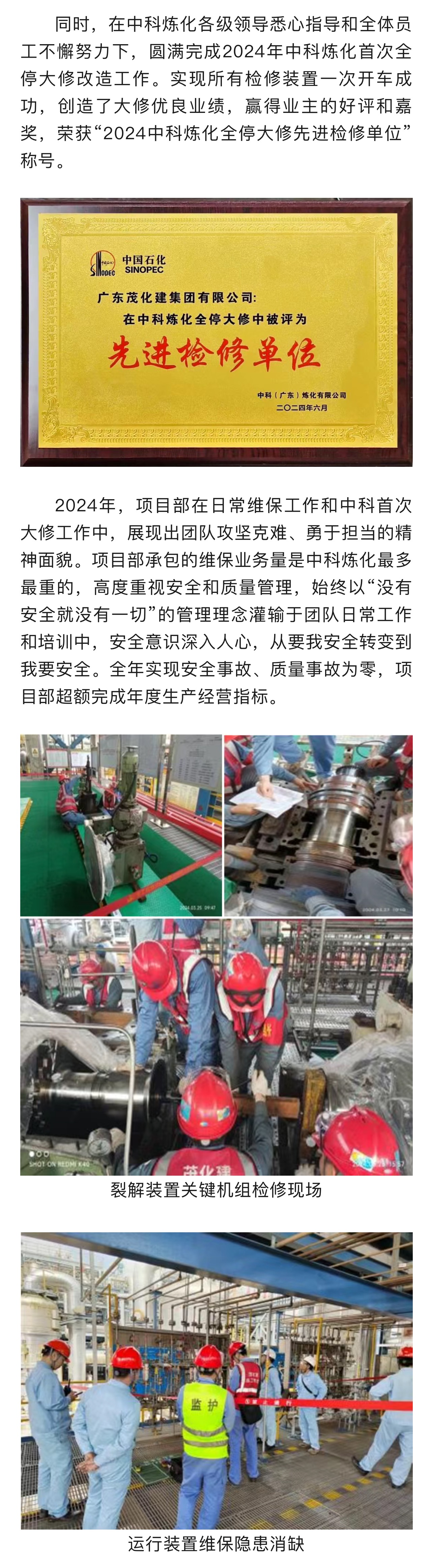 喜報(bào)|榮獲2024年中科煉化 “業(yè)務(wù)外包星級(jí)承包商”稱號(hào)