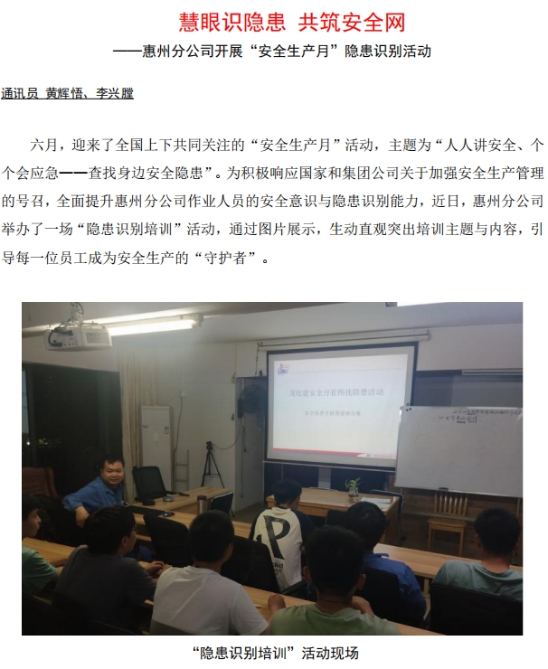 惠州分公司:慧眼識隱患 共筑安全網(wǎng)