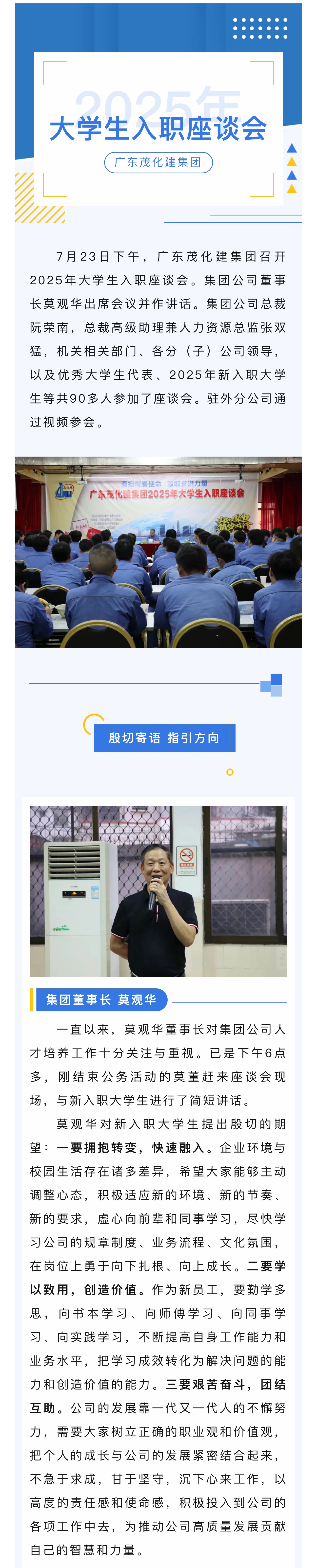 集團(tuán)公司召開(kāi)2025年大學(xué)生入職座談會(huì)