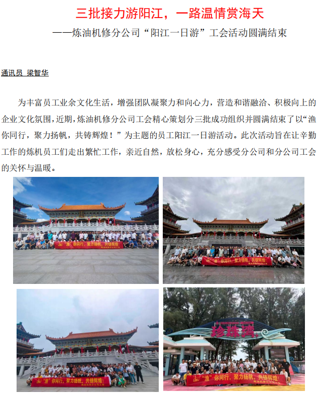 煉油機修分公司“陽江一日游”工會活動圓滿結(jié)束